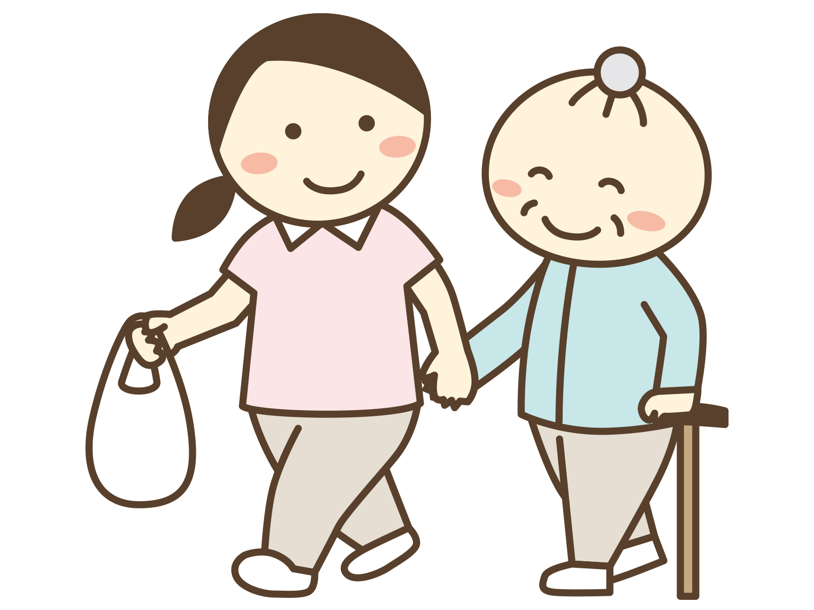 杖歩行、歩行器使用の場合の転倒サポート、見守りを行います。